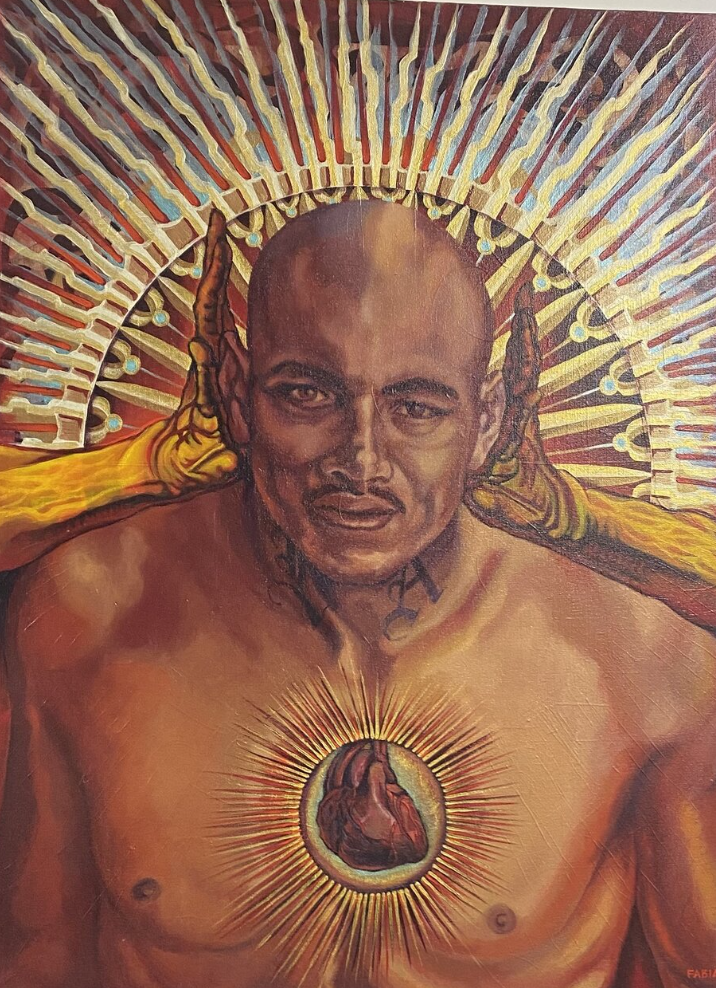 Icons explores the collective human urge to manifest icons in order to surpass our most difficult moments, how these icons become vessels and reflections of ourselves, and ultimately how we transcend the icons themselves to realize our true power. Included are Aztec icons made during the 30 years an artist spent in solitary confinement, a bust of Jesus made out of state issued soap, icons of "Urban Catholicism" and Native American spirit animals, among other profound images that use the icon to depict aspects of the unseen.